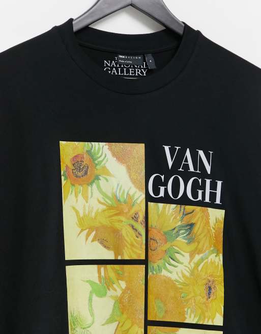 Asos Design Oversized T Shirt Met Print Van Zonnebloemen Van Van Gogh In Zwart Asos
