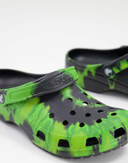 Crocs Classic Swirl Tie Dye Clogs In Lime And Black Asos